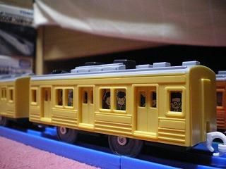 | ■JR通勤電車(201系) ○オレンジ塗装 ⇒カナリア塗装 | ![]() ▲JR201系電車カナリア塗装 国鉄が1979年から新造された直流通勤型電車。 この製品は、かつて総武線などで活躍した201系車両がプロトタイプ。 ![]() ▲クハ201-3(クハ201) ![]() ▲モハ200-3(モハ200) ![]() ▲クハ200-3(クハ200) クハ201-3+モハ200-3+クハ200-3は管理人が勝手につけた車番です。 | |