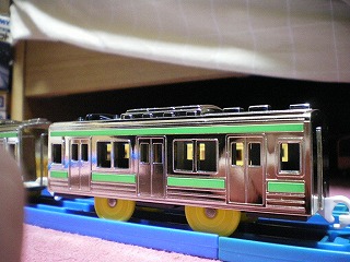 ![]() ▲JR205系電車(山手線) 国鉄が1985年から新造された直流近郊型電車。 いわゆる『銀メッキ』な電車だった時の205系山手線 ![]() ▲3006(クハ205) ![]() ▲3016(モハ205) ![]() ▲3056(クハ204) この車両はオークションを通して2編成を中古で購入しました。状態がよい車両だと鏡の如くなことになる(^_^;) ちなみに管理人が昔持っていたプラレールの中で最古参と思われるのはこの205系か100系である。銀メッキの205系を入手した背景には懐かしさというものがあるのです。 | |