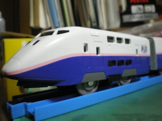 | ■E1系新幹線電車 旧カラーリング車両 現行カラーリング車両 | ![]() Ferewell E1MAX… 1994年から東北新幹線などで運転が開始されたJR東日本のオール二階建新幹線車両。現在ではE4系と同じカラーリングに朱鷺色ともいわれるピンク色の帯を巻いた塗装に変更され、上越新幹線で使用されている。 しかし、平成24年9月29日ダイヤ改正により、残された上越新幹線での定期運用も終了。事実上の引退となってしまう。オール2階建ての12両が時速240kmで駆け抜ける雄姿は、決して忘れ去られることはない。 ![]() ▲E153-100 ![]() ▲E155 ![]() ▲E154 某ホームセンターで新車で購入した。登場時とのカラーリングの違いだけでも印象は変わるものだと実感してしまった。似合っているのか似合っていないのかがよくわからない…です。 | |